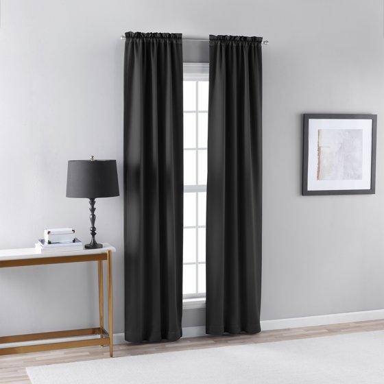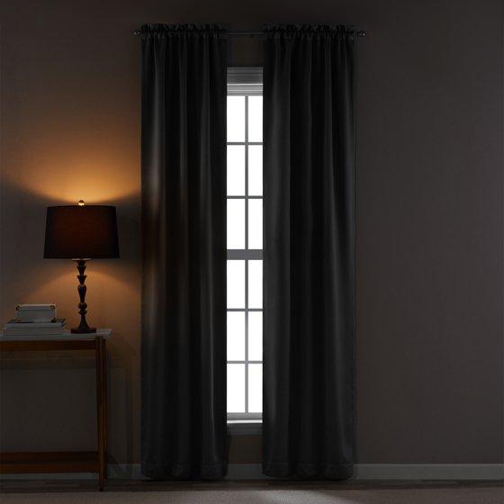 Mainstays Solid Blackout Curtain Panel Pair, Set of 2, Black, 30”W x 95”L