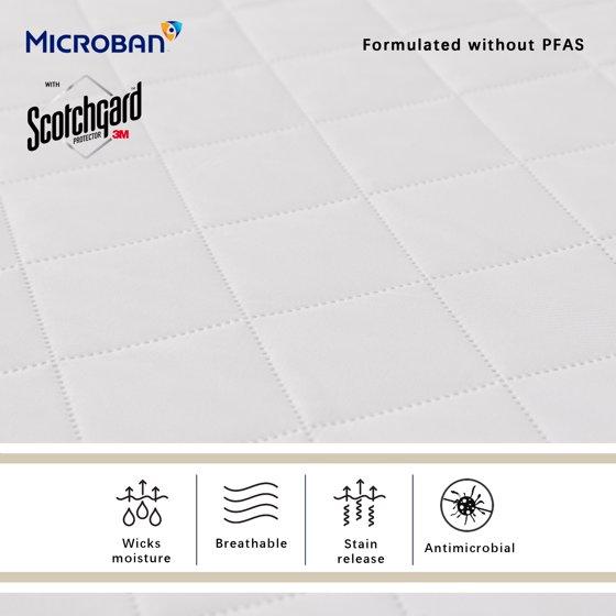 - Microfiber top treated with Scotchgard Stain Release and Moisture Wicking to keep the pad looking fresh and clean while wicking away moisture for breathability