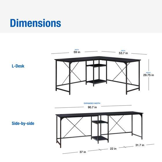 - L-Desk Dimensions: 59" W x 53.7" D x 29.75" H (149.9cm x 136.4cm x 75.6cm)