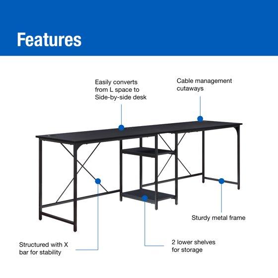 - Easily converts from L space to Side-by-side desk
