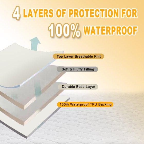 Keep your mattress protected with the Mainstays Waterproof Mattress Pad. This soft and durable pad uses a 100% polyurethane laminated quiet barrier to provide premium waterproof protection for your mattress. 100% polyester fill is treated with Microban Antimicrobial to reduce odor and improve freshness. The Mainstays Waterproof Mattress Pad has a skirt that fits mattresses up to 15" thick to stay in place firmly without slipping and sliding during the night. Easily cared for, simply machine washes this pad as needed. Available in Twin/Twin XL, Full, Queen, and King Sizes.