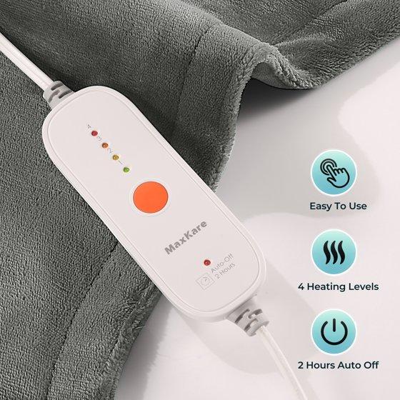 MaxKare extra Large 24"x40" Heating Pad has a unique contoured design to match the shape of your neck, back, shoulders and waist and provides targeted heat therapy for back stress relief, it also can cover other body parts that you need to heat therapy like the abdomen, legs or even joints to relieve fatigue and muscle stiffness. The ultra-soft flannel electric heating pad has an adjustable strap and neck snap button for easy hands-free use. Equipped with ultra-heat technology, the pad heats up quickly to deliver therapy when you need it. Four heat settings allow you to adjust the level of intensity to suit your needs. ETL certification, 2-hour auto-off lets you relax with peace of mind. Lightweight, you can carry it with you to use any time or any place you want.