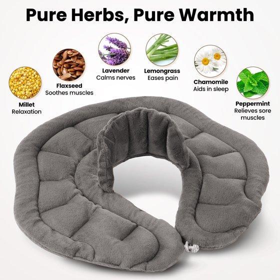 【100% Herbal aroma】The neck and shoulder microwave heating pad is made of super-soft fabrics and 100% herbal mixture filling. The filling includes millet, flax seeds, lavender, lemon granules, and chamomile.