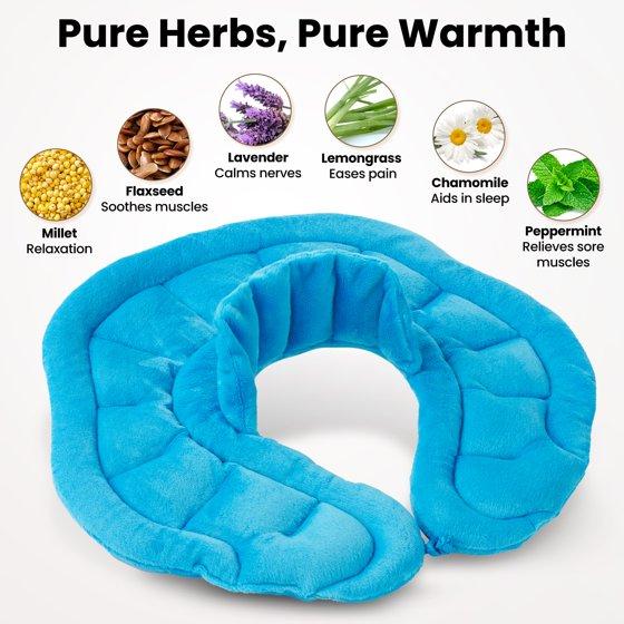 【100% Herbal aroma】The neck and shoulder microwave heating pad is made of super-soft fabrics and 100% herbal mixture filling. The filling includes millet, flax seeds, lavender, lemon granules, and chamomile.
