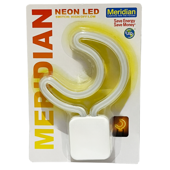 Introducing the Meridian Yellow Neon Moon Night Light: Illuminate your space with a captivating blend of celestial wonder and vibrant color. Our Yellow Neon Moon Night Light is more than just an ordinary light source – it's a piece of art that brings the enchanting beauty of the moon into your home. Indulge in the captivating allure of the cosmos, elevate your space, inspire your imagination, and embrace the calming glow of the moon, all in one stunning piece. Only weighing 2.59 ounces allowing for it to stay comfortably in any outlet.