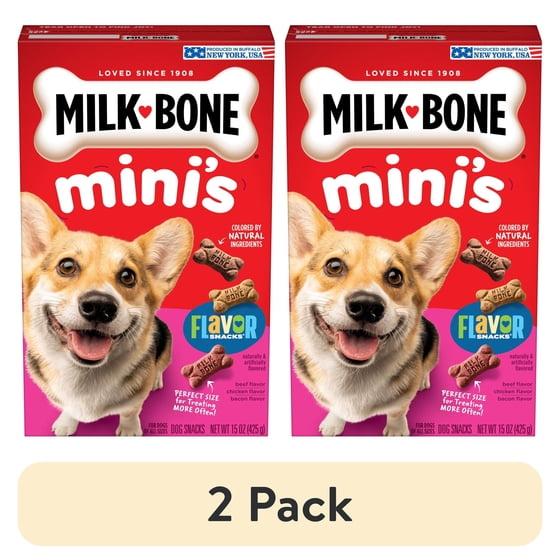 (2 pack) Milk Bone Flavor Snacks Mini’s Dog Biscuits, Flavored Crunchy Dog Treats, 15 oz Box