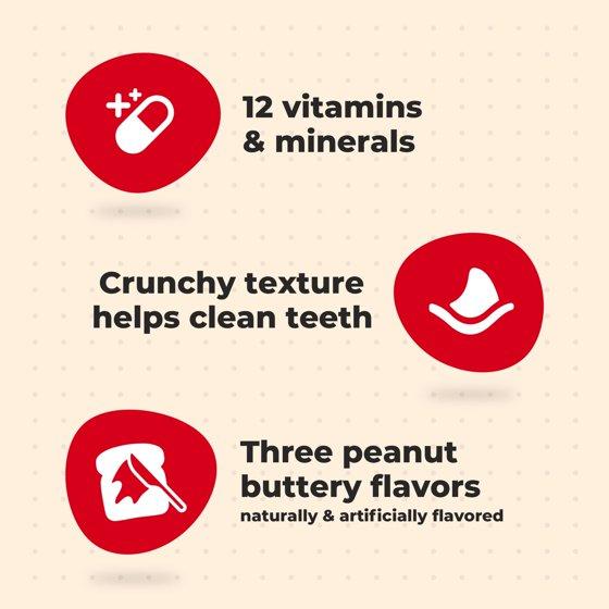 - HAPPY TEETH: Made with calcium and phosphorus to help support healthy teeth and bones, and a crunchy texture to help freshen breath and reduce tartar build-up