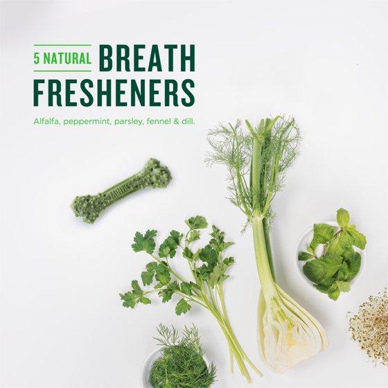 - Dog Chews for Cleaning Teeth and Promoting Good Dog Oral Health: Using Minties dog dental chews daily helps promote oral health and freshens your dog's breath with five (5) breath fresheners alfalfa, parsley, fennel dill, and peppermint