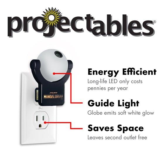 Bring the dynamic duo of The Mandalorian and The Child from a far-off galaxy into your home! This awesome Projectables night light displays a vibrant 3ft. image of the two adventurers across your ceiling, wall or floor. Featuring officially licensed art from the hit series, The Mandalorian, this light is perfect for fans of all ages. The glowing globe acts as a great guide light. You can also vertically adjust the globe to point the image where you want! Additionally, the internal sensors automatically turn the light ON at dusk and OFF at dawn — giving you light when you need it the most. Showcase your Star Wars excitement with The Mandalorian single-image Projectable!