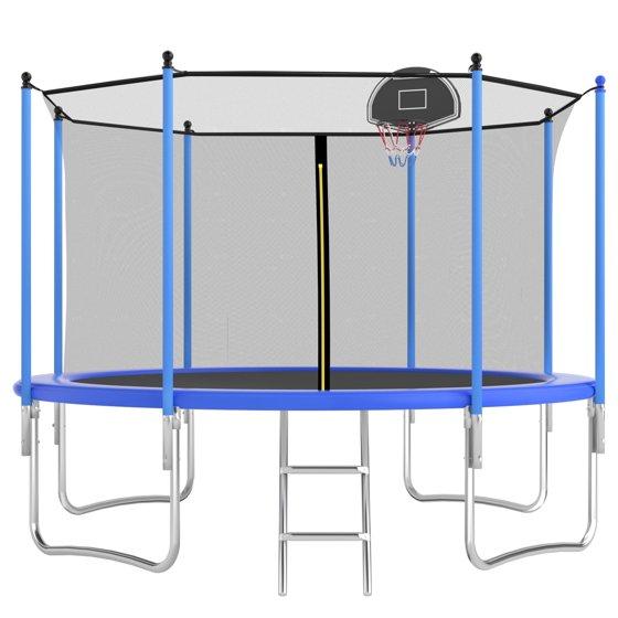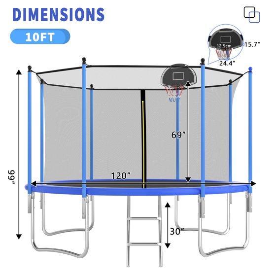Ovatoys 1000LBS 10FT Trampoline for Adults and Kids,Trampoline with Enclosure,Basketball Hoop, Recreational Trampoline with Ladder, Heavy Duty Trampoline Capacity for 5-6 Kids