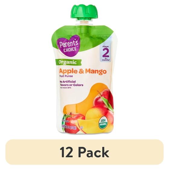 (12 pack) Parent's Choice Organic Stage 2 Baby Food, Apple and Mango Puree, 4 oz Pouch
