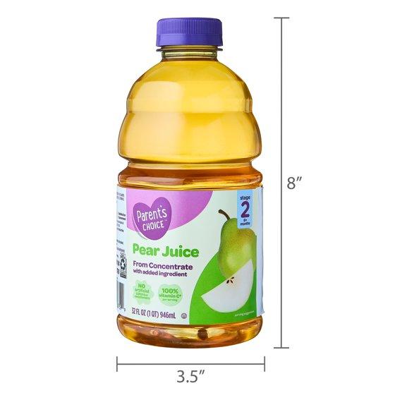 - Parent’s Choice Pear Juice from Concentrate, 32 fl oz