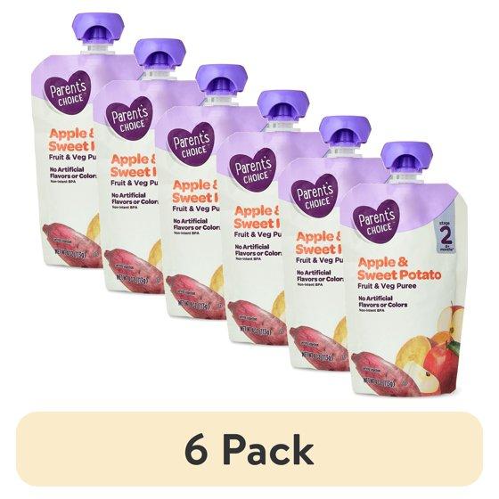 (6 pack) Parent's Choice Stage 2 Baby Food, Apple and Sweet Potato Puree, 4 oz Pouch