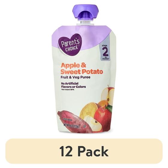 (12 pack) Parent's Choice Stage 2 Baby Food, Apple and Sweet Potato Puree, 4 oz Pouch
