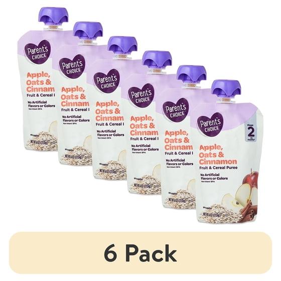 (6 pack) Parent's Choice Stage 2 Baby Food, Apple, Cinnamon, and Oats Fruit and Cereal Puree, 4 oz Pouch