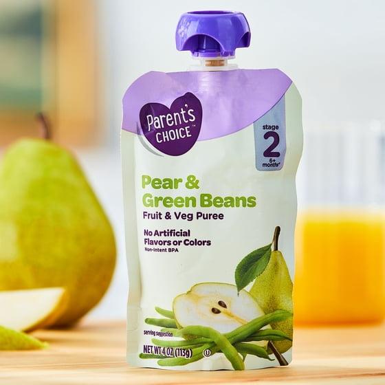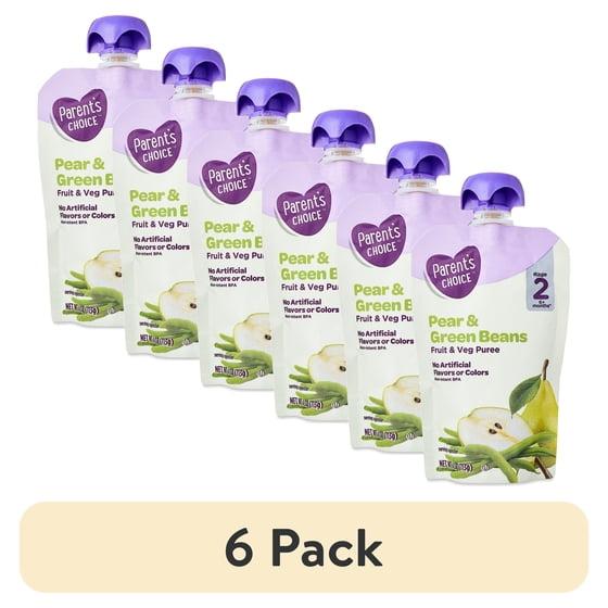 (6 pack) Parent's Choice Stage 2 Baby Food, Pear and Green Beans Puree, 4 oz Pouch