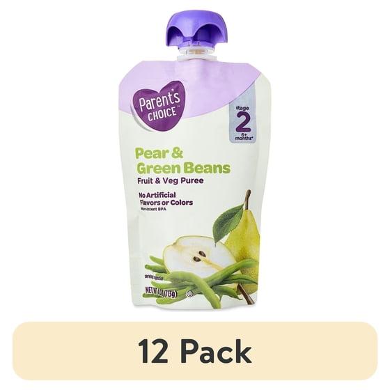 (12 pack) Parent's Choice Stage 2 Baby Food, Pear and Green Beans Puree, 4 oz Pouch