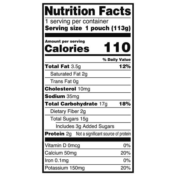- Intended for children ages 6+ months Made with real fruit No artificial flavors or colors BPA-free packaging May contain traces of milk and wheat