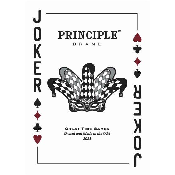 Principle Premium Jumbo index Size Poker Playing Cards are expertly crafted to enhance your gaming experience. Designed by Great Time Games, a family-owned U.S. company, these cards boast exceptional quality and outstanding value. As leaders in the industry, our mission encompasses the creation of items that consistently surpass expectations in durability, aesthetic design, and playability. The standard deck is available in striking Red or Blue, meticulously printed on superior quality paper using high-performance inks and coatings. Elevate your card games with a product that's synonymous with superiority and sophistication.