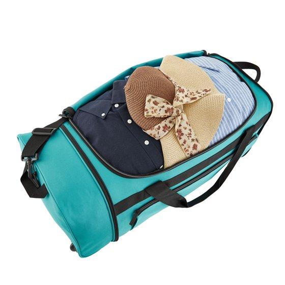 Protege 28 in Large Collapsible Rolling Duffel Bag for Travel, Teal