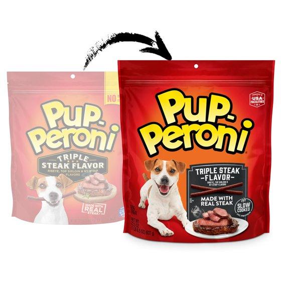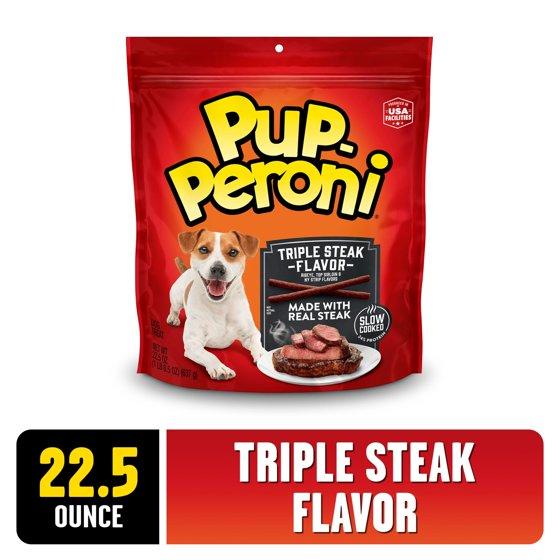 - Contains one (1) 22.5 oz. bag of Pup-Peroni Triple Steak Flavor soft dog treats made with real steak