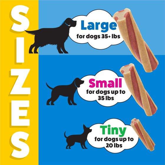 - Large dog treats with twisty shape sized for large adult dogs (35 lbs. and over)