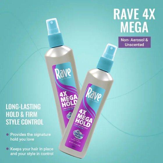 - Long-Lasting Hold Firm Style Control: Rave 4x Mega Unscented Hairspray provides the signature hold you love combined with anti-humidity technology to keep your hair in place and your style in control.