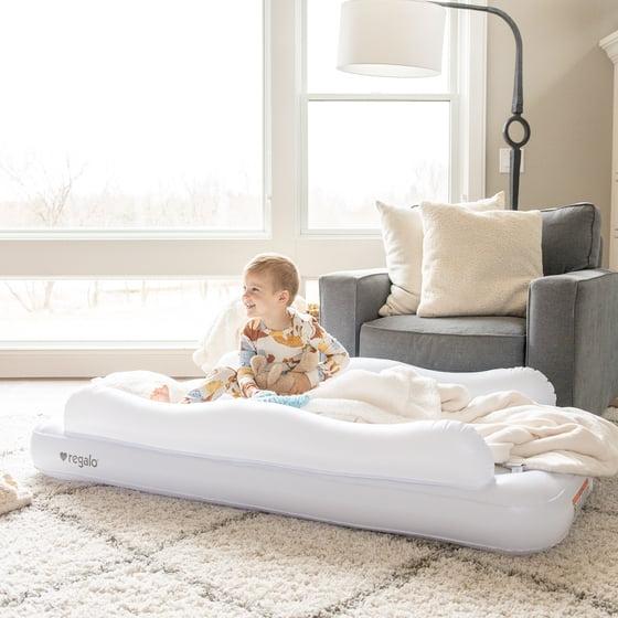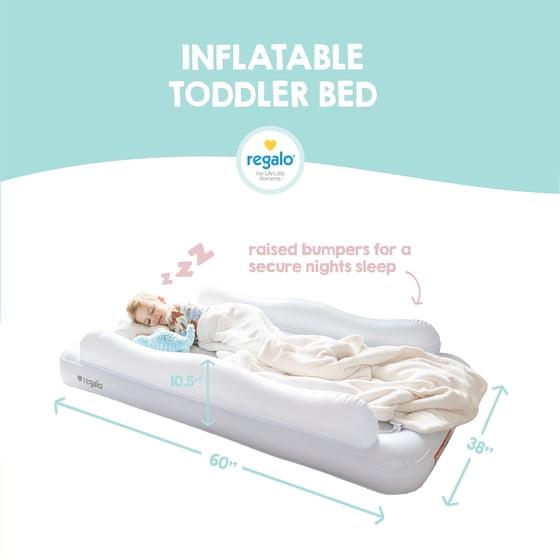 Regalo Inflatable Toddler Travel Bed with Safety Rails, Air Pump & Carry Bag, White