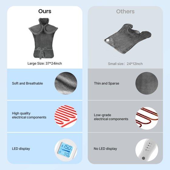 RENPHO Large Heating Pad (24'' x 37'') delivers penetrating heat to large body areas simultaneously to simply keep you warm on cold days. Designed specially to be worn around the back neck and shoulders.