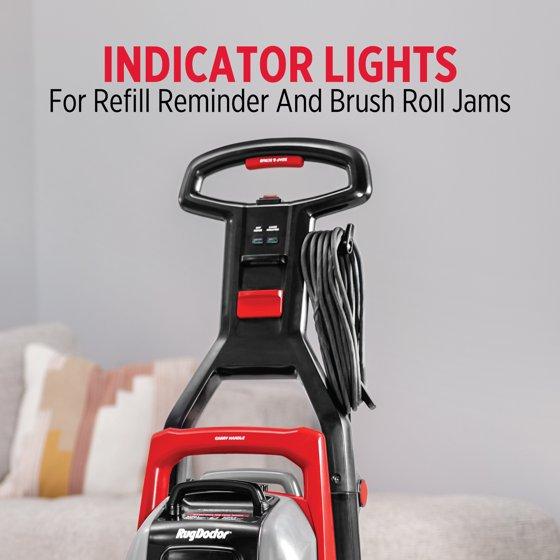 - DIGITAL INDICATOR LIGHTS alert the user when the cleaning solution is empty or if there is a brush roll jam.