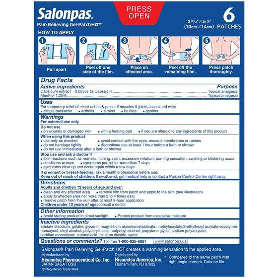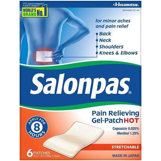 Salonpas Pain Relief Patches for Back, Neck, Shoulder, Knee and Muscle Soreness - 6 Count