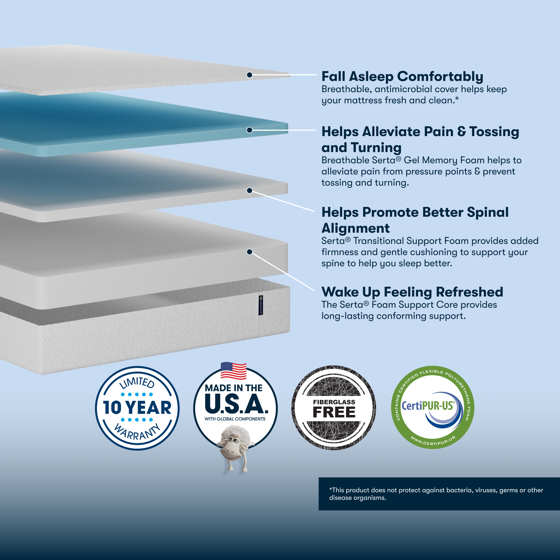 Serta 10 inch, Queen Mattress, Medium Mattress, Gel Memory Foam Mattress, Cooling, Pressure Relief, Mattress in a Box, Queen Size Mattress