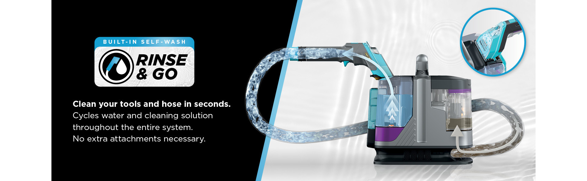 - ON-BOARD SELF CLEANING FEATURE: Cleans your tool and hose in seconds just click into place and clean. Cycles water and cleaning solution throughout the entire system, no extra attachments necessary.