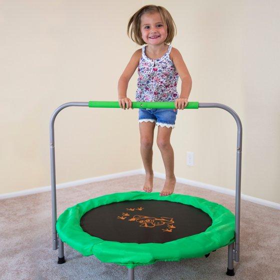 Skywalker Trampolines 36" Mini Trampoline - Green Round Bouncer for Kids & Toddlers, Indoor/Outdoor Use, No-Spring Design with Handlebar