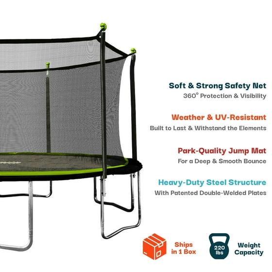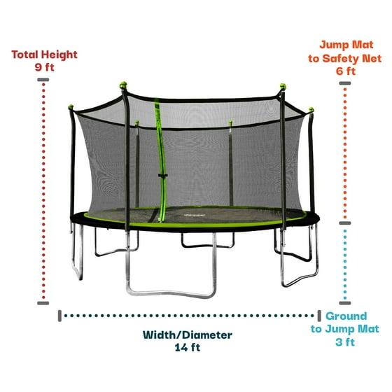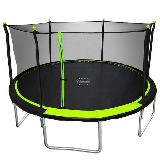 Sportspower Bounce Pro 14 ft Trampoline for Outdoor Use with UV-Resistant Safety Enclosure and Jump Mat, Heavy-Duty Steel Frame, Green and Black, ASTM Safety Certified