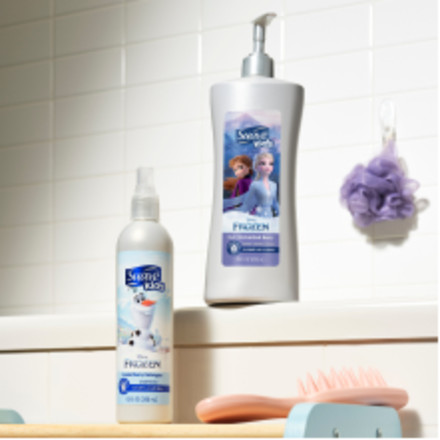 Bring a little Frozen magic to your child’s hair care routine with Suave Kids Disney Frozen Hair Detangler Spray! This gentle, tear-free formula helps tame tough tangles and smooth hair for easy brushing—no more tugging or tears. Infused with the Enchanted Berry scent, it leaves hair soft, shiny, and deliciously fresh. Perfect for all hair types, this lightweight conditioning spray is tear-free, dermatologist-tested and is safe for daily use. Whether after a bath or before styling, it’s the perfect way to keep your little one’s hair looking and feeling magical—just like Elsa and Anna! Suitable for all hair types, Suave Kids 3-in-1 helps kids look, feel, and smell their best from head to toe. Like all Suave products, it’s cruelty-free and never tested on animals—so parents can feel great about their choice.