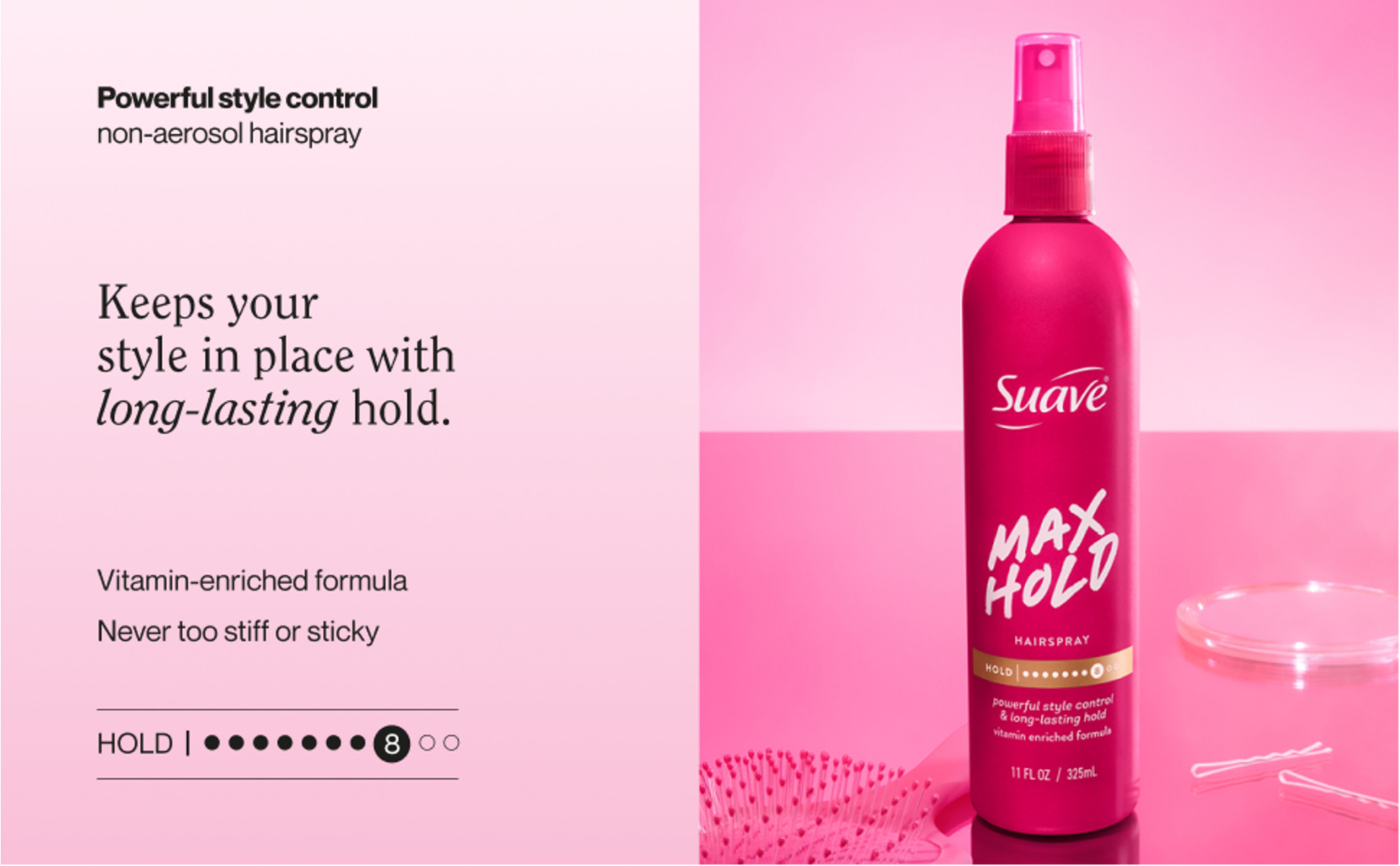 - POWERFUL STYLE CONTROL: Suave Max Hold Hair Spray delivers strong, long-lasting hold that keeps your style locked in place from day to night