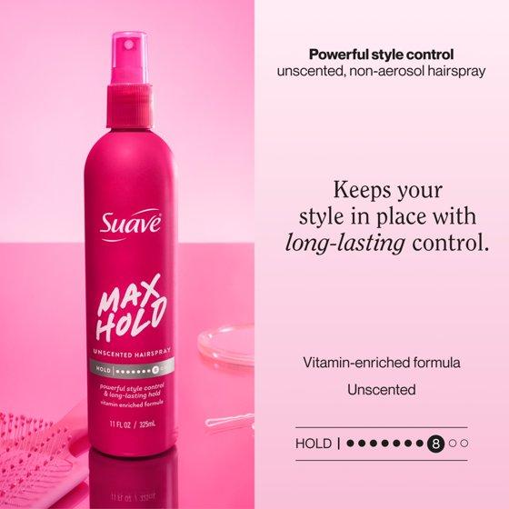 Suave Max Hold Unscented Non-Aerosol Hairspray, Strong Hold, All Hair Types, 11 FL OZ