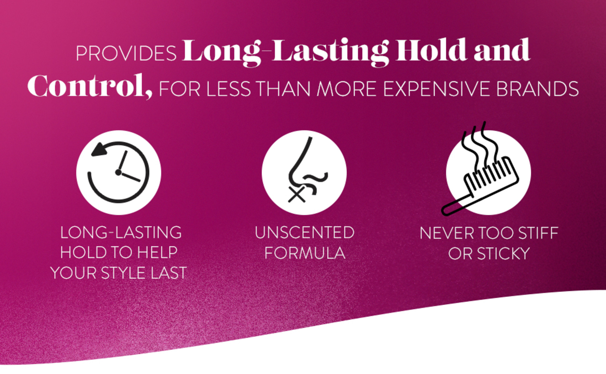 - VITAMIN-ENRICHED: This non-aerosol, unscented hair setting spray creates smooth styles that are never too stiff or sticky
