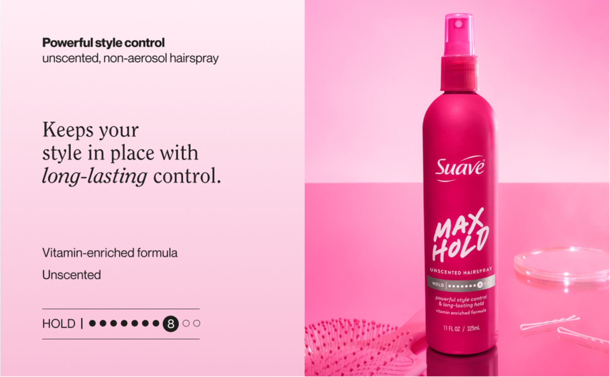 - POWERFUL STYLE CONTROL: Suave Max Hold Hair Spray delivers strong, long-lasting hold that keeps your style locked in place from day to night