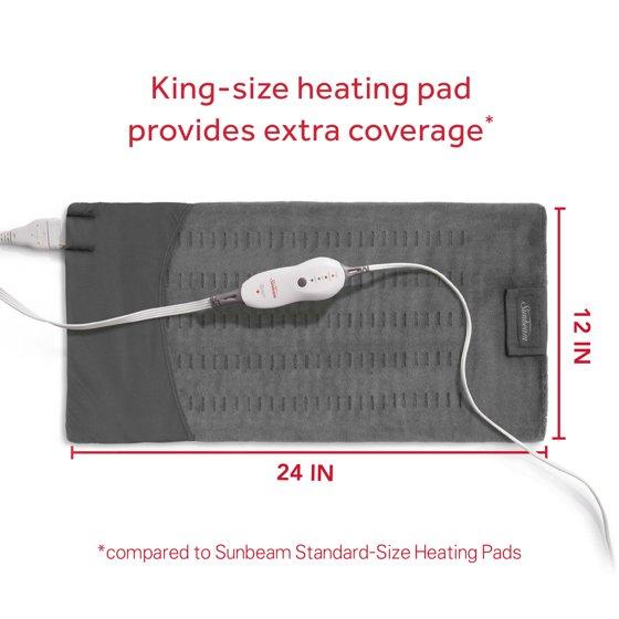 - Sunbeam 12" x 24" King-Size Heating Pad with Compact Storage, Gray