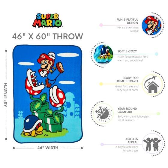 Super Mario Kids Fleece Throw Blanket 46x60, Nintendo