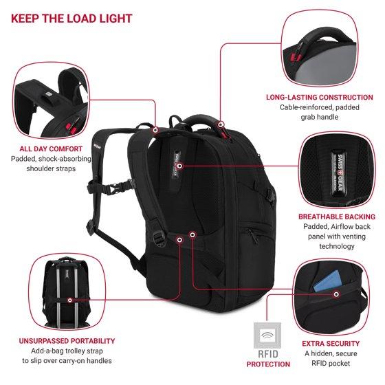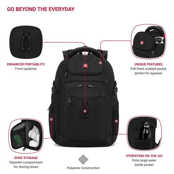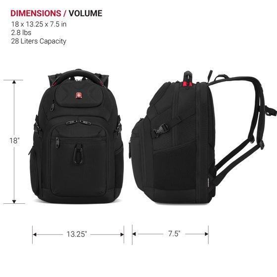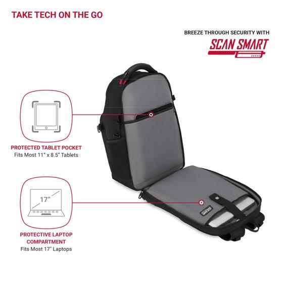 SWISSGEAR Stride ScanSmart Laptop Backpack, 17" Padded Compartment, Travel & Everyday Use, Black