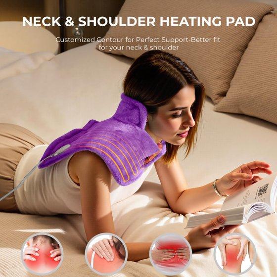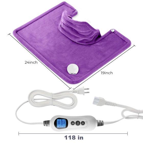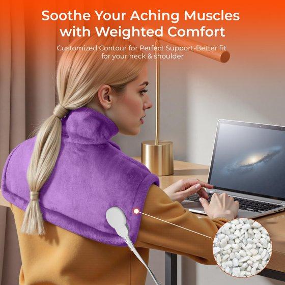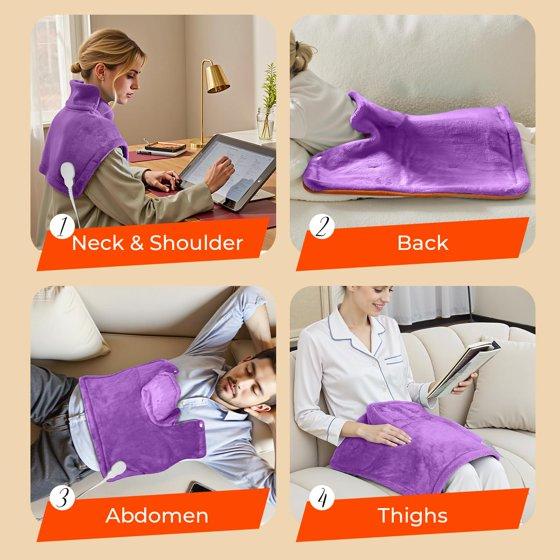 TCVOR Soft Flannel Heating Pad for Neck and Shoulders and Back, 19 x 24 in Wearable Weighted Electric Heating Pads with 6 Heat Settings & 6 Timer Auto Shut Off, Puple