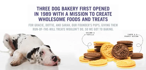 Three Dog Bakery Lick'n Crunch Sandwich Cookies, Carob and Peanut Butter and Golden and Vanilla Flavor, Crunchy Dog Treats, 26 oz.