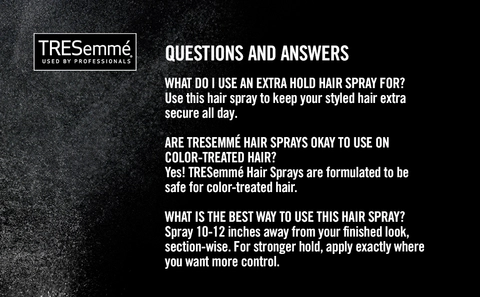 - REGIMEN USE: Apply Tresemme Protecting Heat Styling Spray to damp hair for heat and breakage protection before heat styling and finish your style with Extra Hold Hairspray for all-day hold