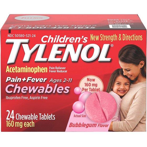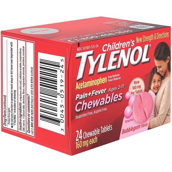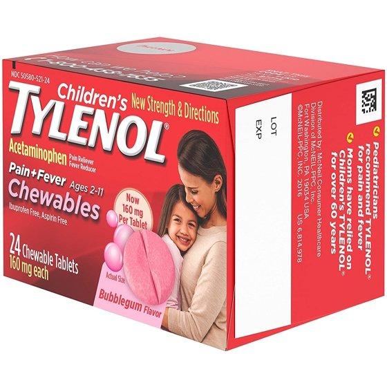 Tylenol Childrens Pain Plus Fever Reducer Chewables Tablets Bubblegum-flavored, 24 Ea, 3 Pack