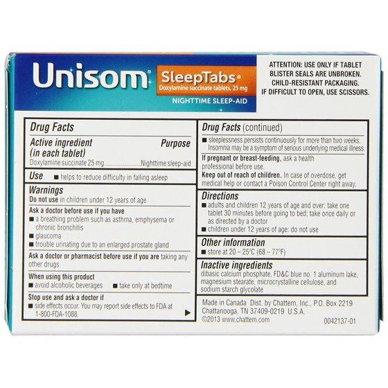 - EVERYTHING YOU NEED, NOTHING YOU DON'T: Unlike some OTC brands, Unisom offers single active ingredient sleep-aids. If all you need is a great night's sleep, skip the extra medicine & reach for Unisom.
