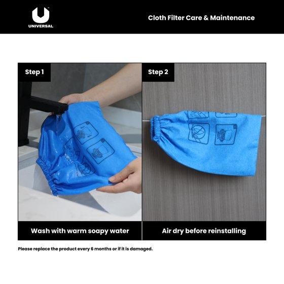 - Easy to install reusable cloth filter
