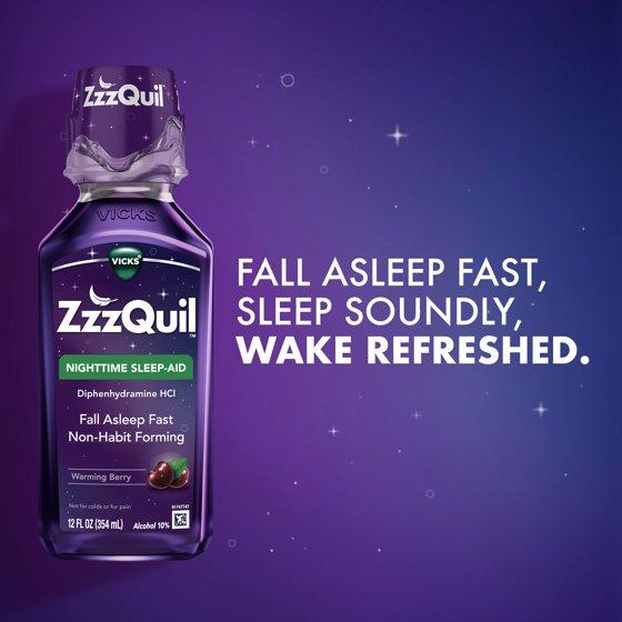 - FALL ASLEEP FAST: Warming Berry ZzzQuil Liquid Sleep Aid helps you fall asleep in as little as 20 minutes